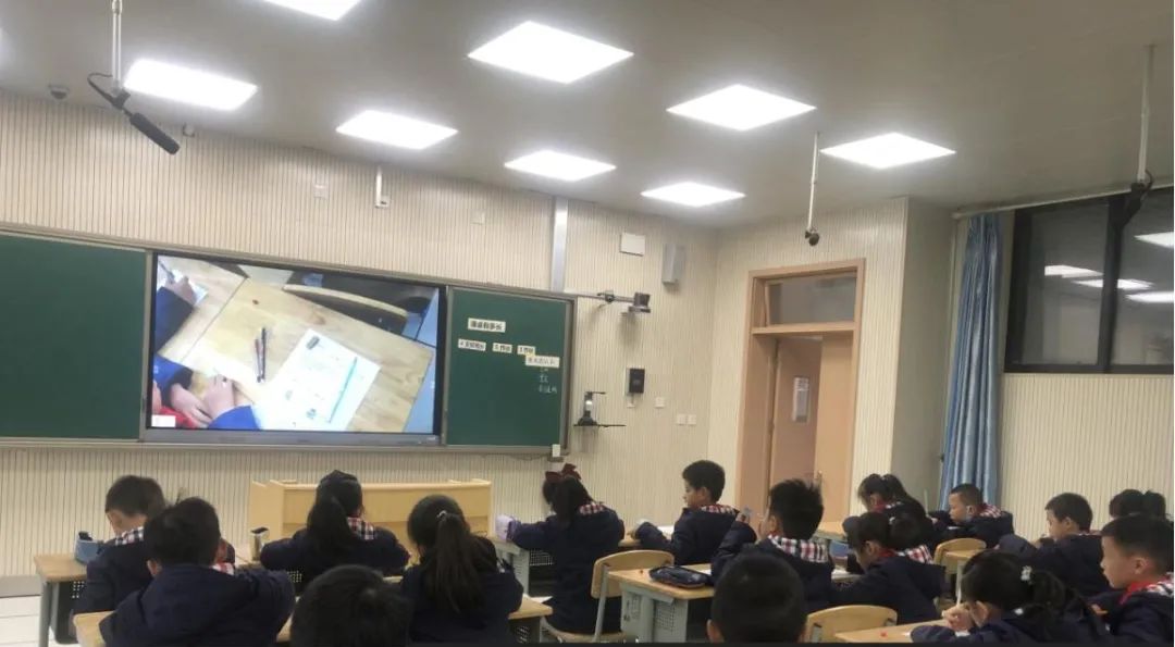 ▲ 利用現(xiàn)代教學(xué)技術(shù),投屏展示孩子們的學(xué)習(xí)成果。