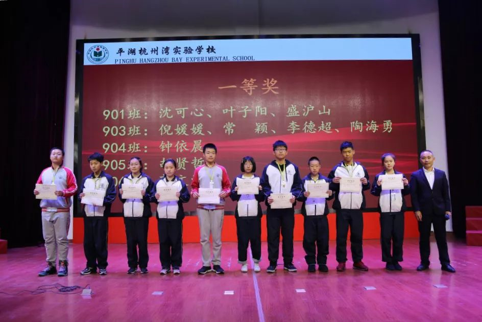 除了九年級的科學(xué)競賽外,本周還在初中部進行了《我與平湖杭州灣實驗學(xué)校的故事》作文競賽,會上吳正龍主任宣讀了初中部三個年級或一、二、三等獎的學(xué)生名單并對獲獎學(xué)生進行頒獎。